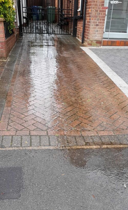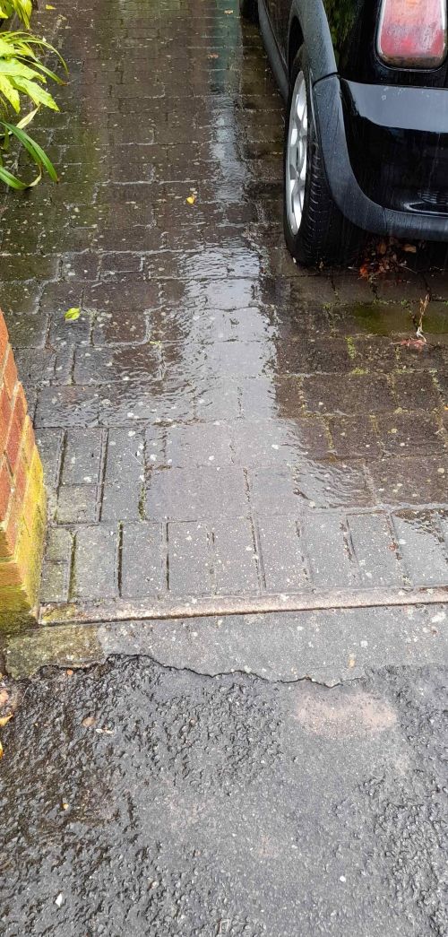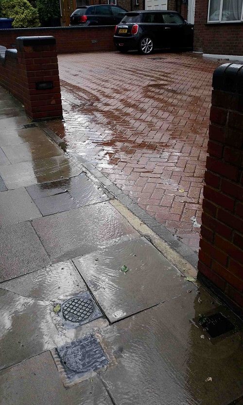 The manufacturers may claim that accumulated debris slows but doesn’t stop rain soaking away. Maybe so in large, flat places like car parks. But in suburban front gardens, especially if sloping and with trees close by, much of the “permeable paving” put in over the years just gets too blocked to cope with sudden heavy rain.